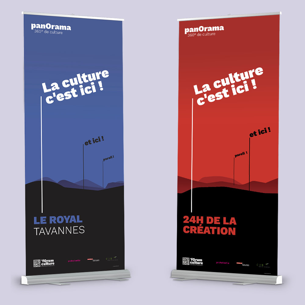 Les roll-ups personnalisés forment un panOrama pour la conférence de presse et sont ensuite distribués aux institutions pour signaler l'opération.